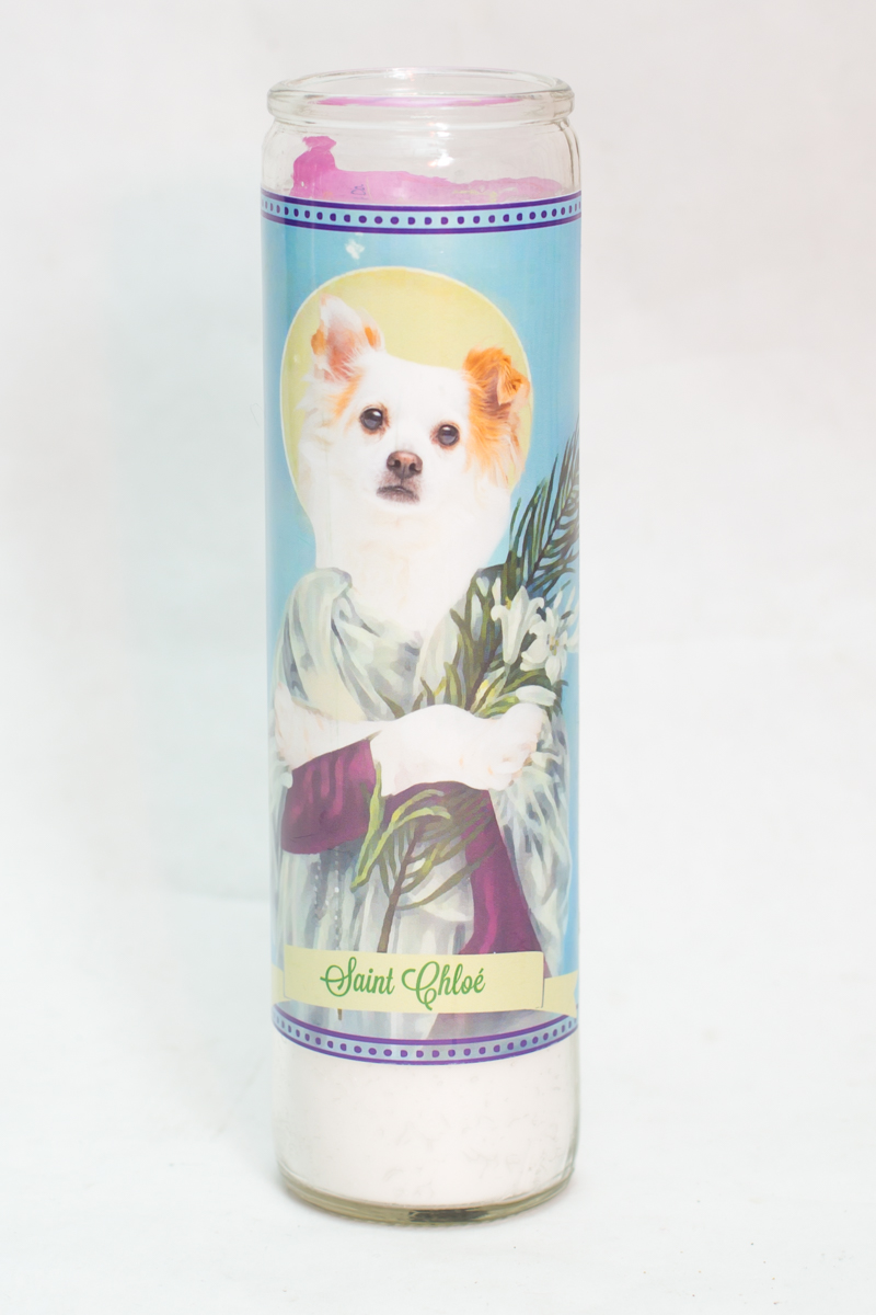 Chloé the Pomchi's custom unscented prayer candle.