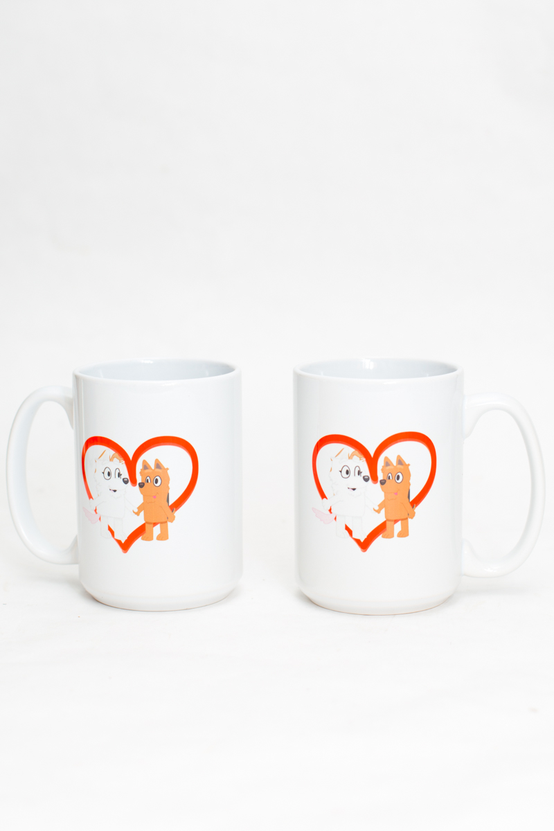 Drink your morning coffee with your favorite pups! 15oz coffee mug. Dishwasher and microwave safe.