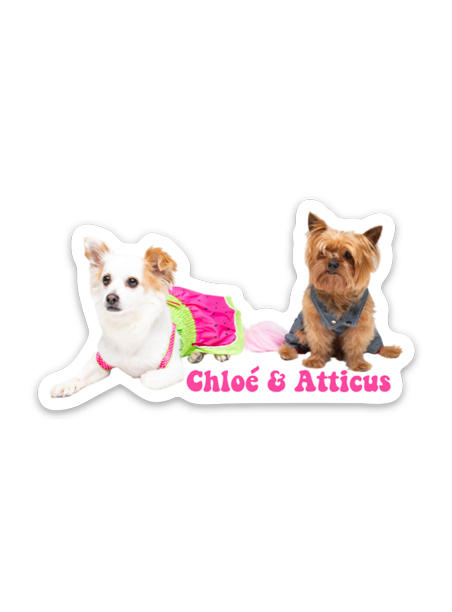 Chloé and Atticus Sticker $4.00 Chloé in her watermelon dress and Atticus in his overalls. Approximately 3" x 1.68". Tweet
